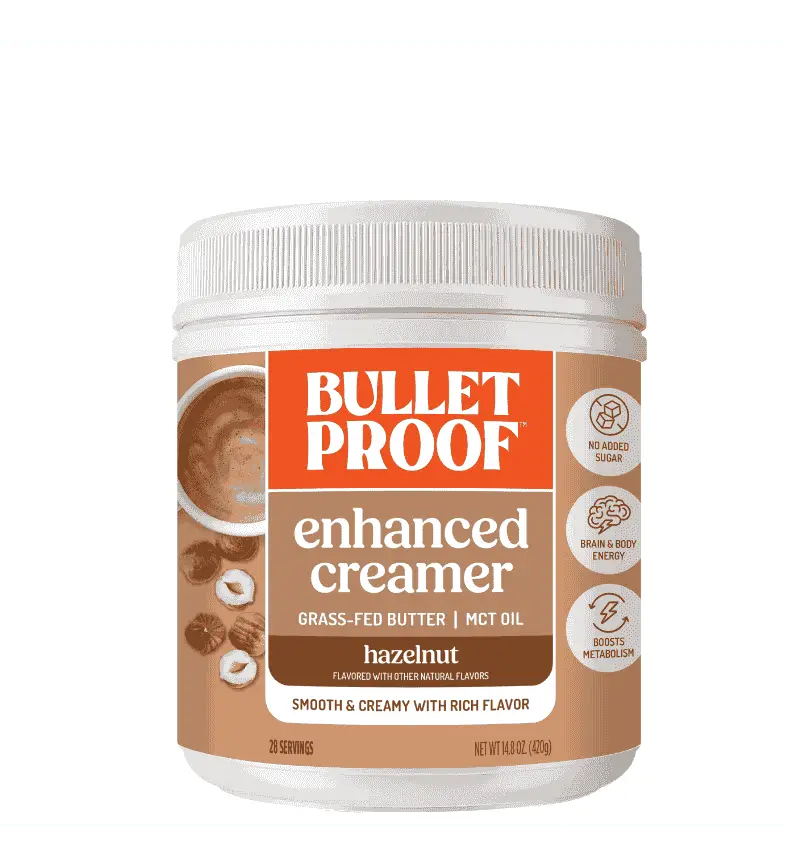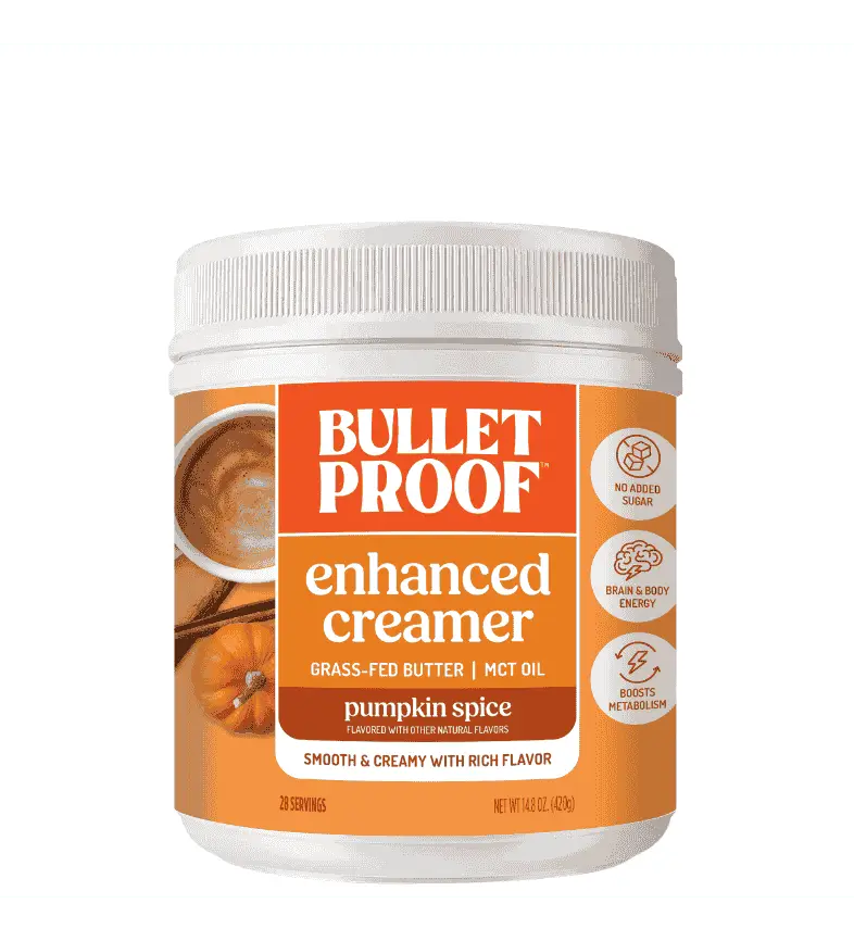 Bulletproof Creamer ist eine Kombination aus Bulletproof MCT Oil und Weidebutter in Pulverform, die sich im Kaffee schnell auflöst. Er liefert Ihnen langanhaltende Energie aus hochwertigen Fetten, so dass Sie gut durch ein Morgen kommen und Ihrem Tag einen Energieschub verleihen. So bleiben Sie Bulletproof, egal wo Sie hingehen!