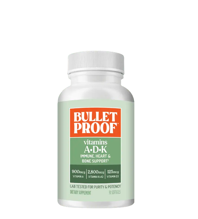 Bulletproof Vitamins A-D-K bietet drei wichtige fettlösliche Vitamine in einer täglichen Softgel-Kapsel, mit den Formen und Dosierungen, die laut moderner wissenschaftlicher Forschung am effektivsten sind. Ihr Einsatz macht es Ihnen leicht, Ihren täglichen Vitaminbedarf zu decken.