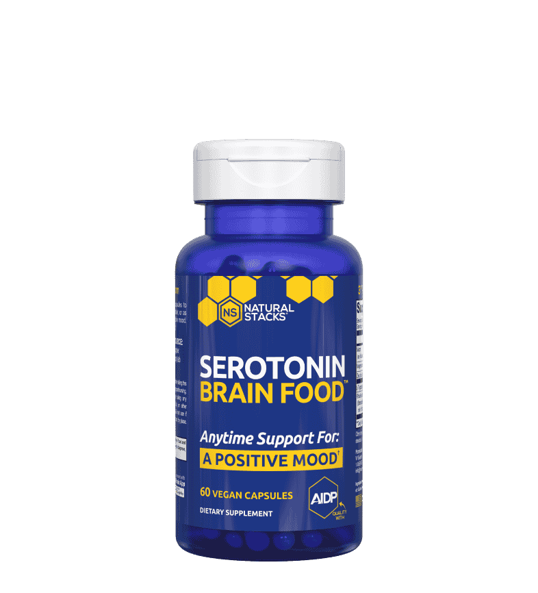 Serotonin Brain Food enthält die Aminosäuren-Vorstufe L-Tryptophan, Serotoninstoffwechsel-Co-Faktoren (Vitamin B3, Zink, Magnesium) und Kräuterextrakte (Rhodiola Rosea). Dies ist eine Neuauflage mit weniger Vitamin B3.