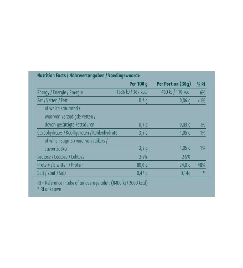 - Molkenproteinkonzentrat: 80 % Eiweiß