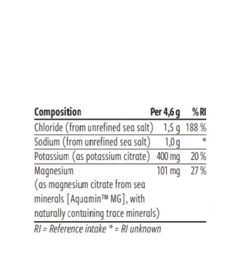 NoordCode Performance Electrolytes Unflavoured ist auf die Ergänzung von Natrium und Chlorid ausgerichtet. Diese Elektrolyte gehen am häufigsten über Schweiß und Urin verloren. Natrium und Chlorid bilden zusammen Salz (Natriumchlorid) und können einfach durch Salz ergänzt werden.